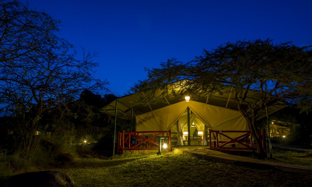 Scenically located in a glade, known as ‘the place of the klipspringer' (mbuzi mawe), and guarded by three million year-old granite towers, this luxury tented-camp is unique. Cleverly located on one of the main annual migration corridors for over one million wildebeest, half a million zebras and gazelles, and their accompanying cast of predators it is also located at the very epicentre of one of the world's most famous national parks.
