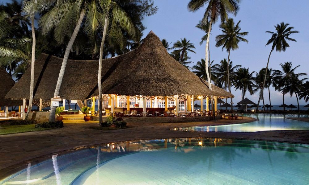 The Neptune Paradise Beach Resort & Spa is set in a beautiful tropical garden. The 92 rooms are in makuti roofed cottages bungalows with only 4 rooms per unit. This gives you a relaxing and quiet holiday. Restaurants and bars form a perfect match between hotel and nature and offer a real African atmosphere. The Resort is located at the South Coast at the famous Diani Beach. Mombasa town at ca. 40 km, Moi International Airport at ca. 45 km and the nearby Ukunda Airstrip is only ca. 8 km away.