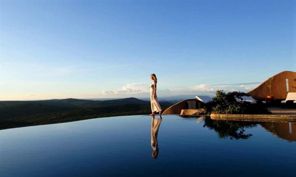 The lodge is built to reflect the architectural heritage of the local communities whose sons and daughters make up the majority of the work force at the lodge. Fifteen cottages, each with two bedrooms are built in an arch formation on either side of the public areas to surround the waterhole but leaving a wide gap to allow the animals free movement to the water.